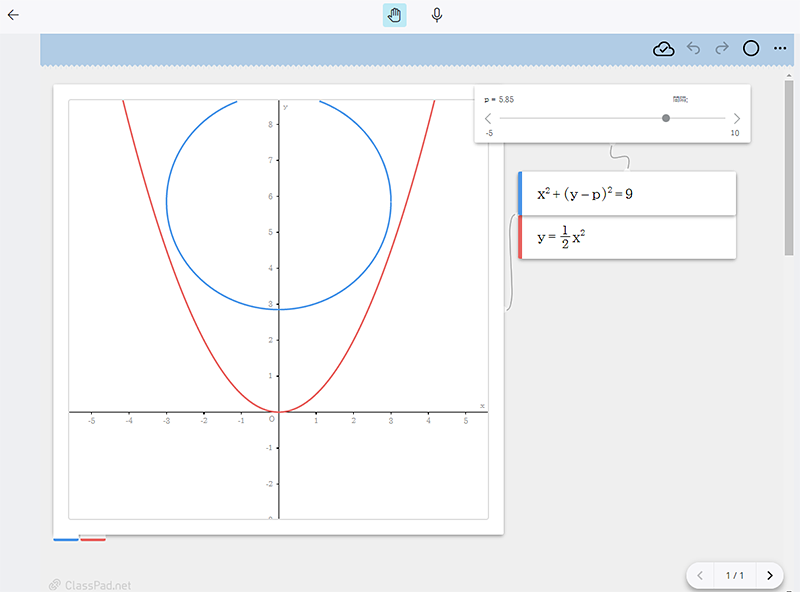 Dieser Sticky ist der Funktionsplotter von ClassPad Math. Funktionen können grafisch dargestellt und auch grafisch gelöst werden, selbstverständlich auch Funktionen mit Parametern und Schiebereglern. Die Achsen des Koordinatensystems sind frei skalier- und beschriftbar, und es können sogar Hintergrundbilder eingefügt werden.